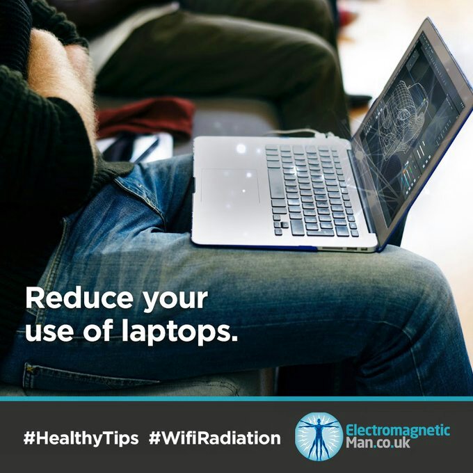 Laptops nicht zu lange auf den Knien nutzen reduziert die Belastung mit elektromagnetischer Strahlung und das auch ohne Online Nutzung. Auch der Akku belastet den Körper.