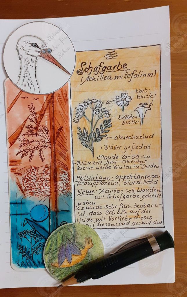 Ich habe für ein paar heimische Heilkräuter Blätter im Naturejournaling Stil gemacht und es sollen noch ein paar mehr werden.