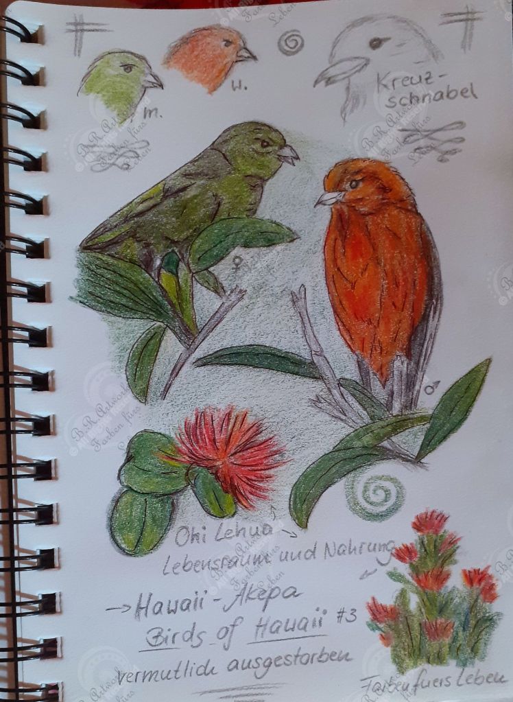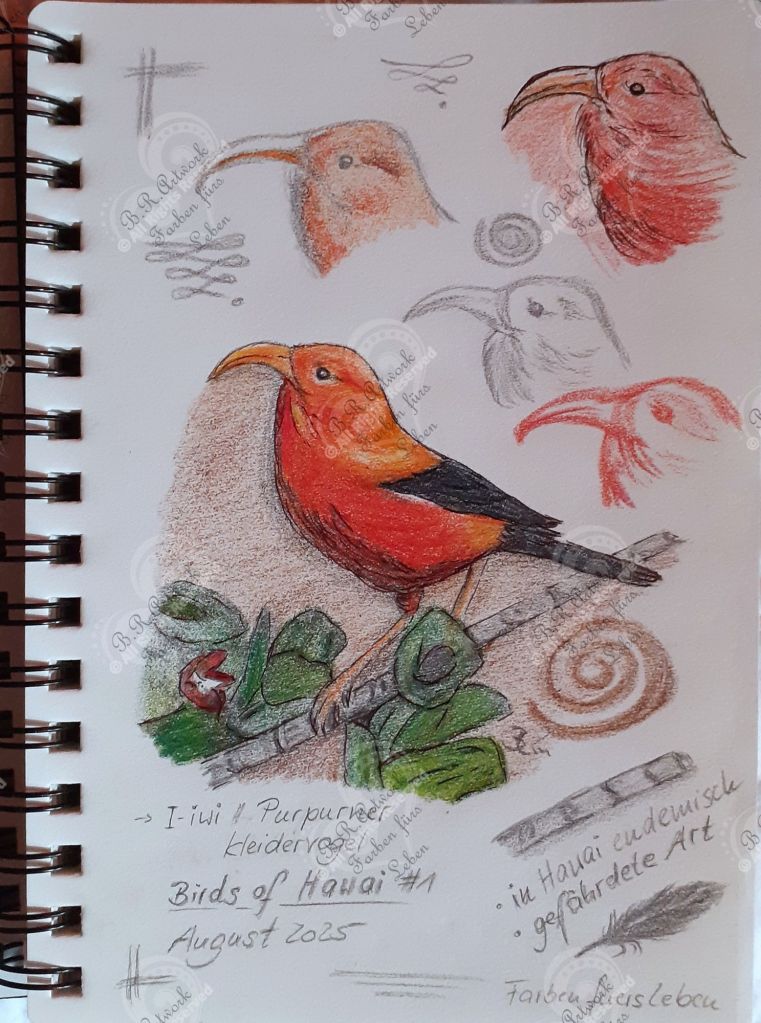 Danach sind auch einige Bilder zu Hawaiianischen Vögeln im Stil von Naturejournaling Blättern entstanden.