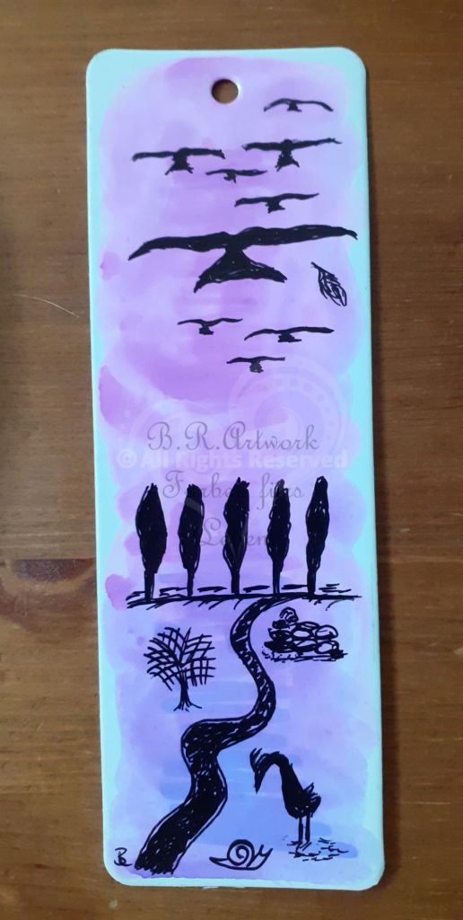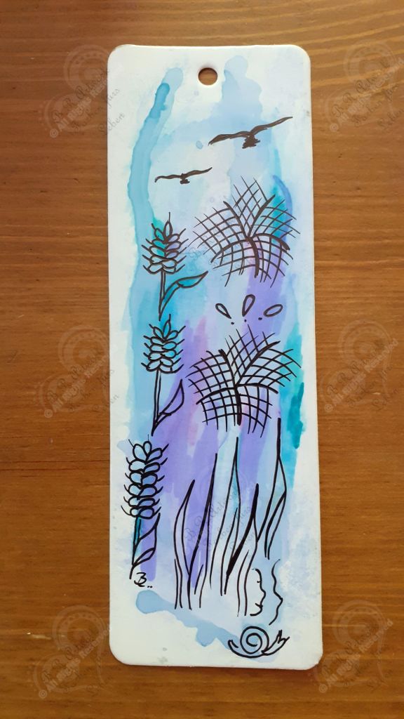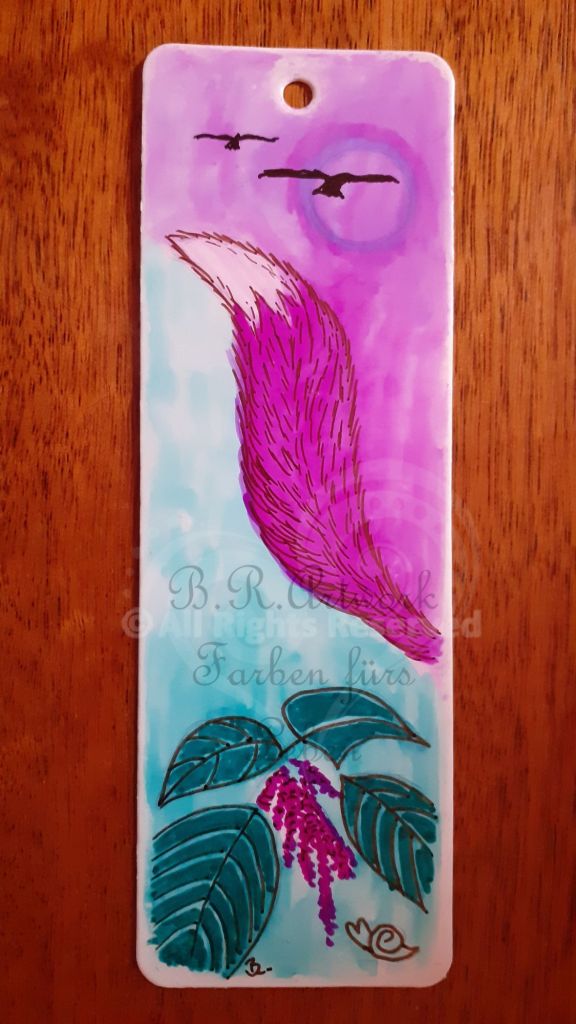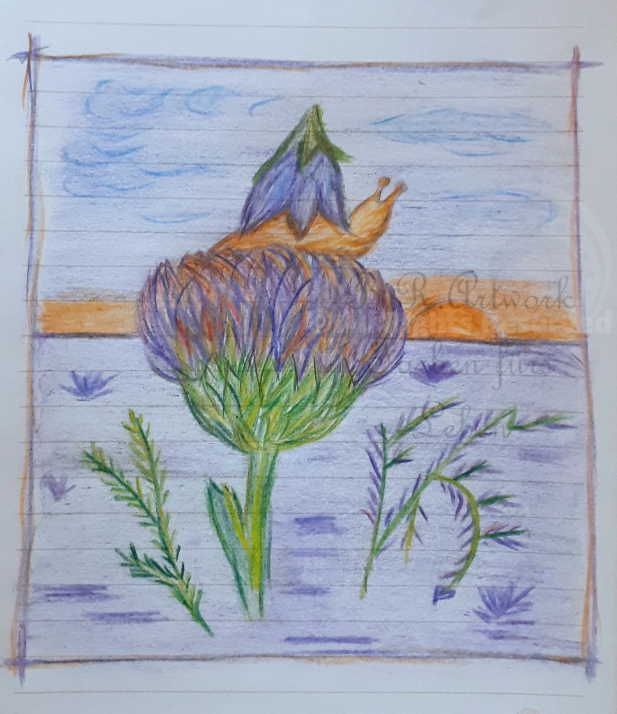 Vor genau einem Jahr kam mir die kleine Schnecke Violet mit ihrer Glockenblumenblüte auf dem Rücken auf ein Papier geschneit und im Verlauf sind einige Bilder und Lesezeichen mit ihr entstanden.